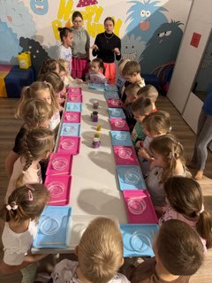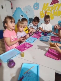 Dzień rozpoczął się zbiórką i przejazdem do Sanoka. Dzieci oprócz wspólnych zabaw wzięły udział w warsztatach edukacyjnych „Slime”. Każdy miał okazję stworzyć swojego kolorowego, pachnącego, brokatowego „stworka”. Po dwóch godzinach zabaw na basenach z kulkami, na zjeżdżalniach, w tunelach dzieci zjadły posiłek i otrzymały drobny upominek.