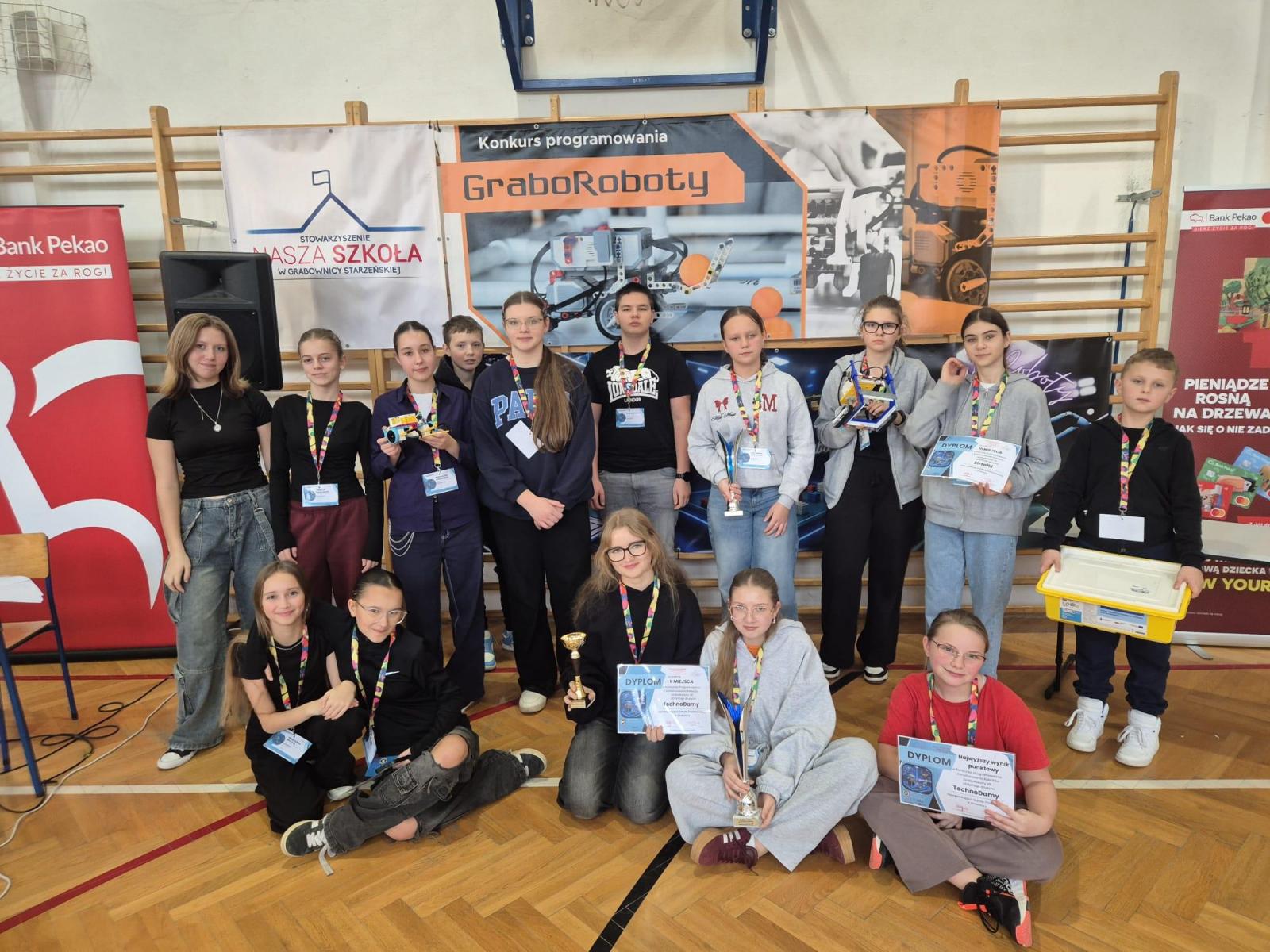 Nagrody dla uczestników zostały ufundowane przez Burmistrza Brzozowa, który objął całe wydarzenie honorowym patronatem. Partnerami konkursu byli Bank Pekao S.A. oraz firma Bakaliano, którym serdecznie dziękujemy za zaangażowanie i wsparcie organizacyjne. Patronat medialny nad wydarzeniem objęło Brzozów INFO, dzięki czemu informacje o konkursie mogły dotrzeć do szerokiego grona odbiorców. Siódma edycja GraboRobotów po raz kolejny pokazała, że w Grabownicy Starzeńskiej potrafi się organizować wydarzenia na wysokim poziomie – z pasją, profesjonalizmem i myślą o przyszłości młodych ludzi. Już dziś z niecierpliwością czekamy na kolejną odsłonę tego wyjątkowego konkursu.